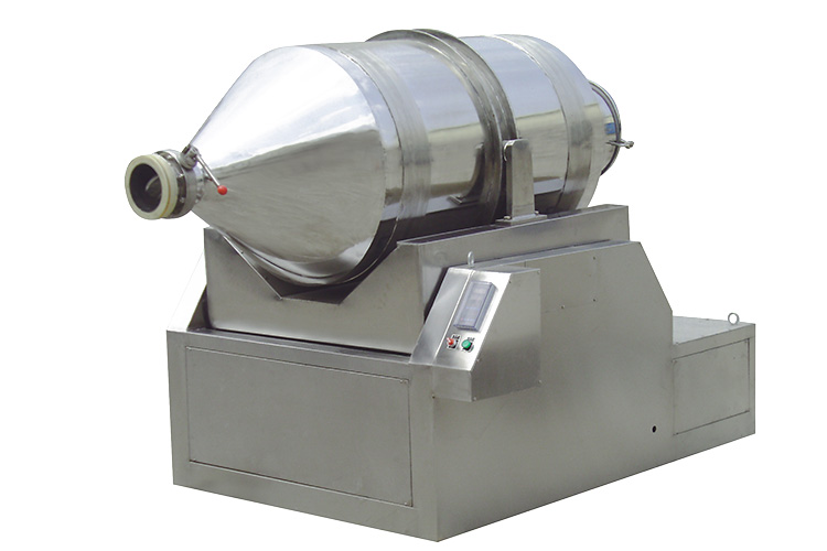 簡介:三維運動混合機應用于制藥、化工、食品、輕工、電子、機械、礦冶、國防工業以及各種科研單位的粉狀、顆粒狀物料的混合。 三維混合機是通過混合筒空間上的三維運動,來消除物料因離心力作用產生的比重偏析、分層、積聚現象,實現多種物料之間相互流動、擴散,從而達到快速、均勻地混合物料。目前各類混合設備中,三維混合機是各方面性能較先進產品。 工作原理:其裝料的筒體在主動軸的帶動下,作周而復始的平移、轉動和翻滾等復合運動,促使物料沿著筒體作三向復合運動,從而實現多種物料的相互流動、擴散、積聚、摻雜,以達到均勻混合的目的。本機混合筒多方向運動,物料無離心力作用,無比重偏析及分層、積聚現象,混合率達99%以上,是目前各種混合機中產品。本產品筒體裝料率大,高可達90%(普通混合機僅為 40%),效率高,混合時間短。筒體的各處為圓弧過度,經過精密拋光處理。 特點:1、三維混合機筒體裝料率大,高可達80~90%(普混合機為40~50%);2、三維運動混合機筒體結構緊湊,裝料、卸料方便直觀;3、物料混合均勻度高,混合時間短,能量消耗低;4、三維混合機不銹鋼制作,外形美觀,可沖洗,便于用戶在大生產中清場;5、三維混合機筒體各部均為圓弧過度,經過多工序精密拋光達到無死角,不滯料、易出料、易清理; 技術規格產品型號料筒容積(L)******裝料容積(L)******裝料重量(Kg)主軸轉速(r/min)電機功率(kW))外形尺寸(mm)(長x寬x高)整機重量(Kg))SYH-505040250-201.11150x1400x1300300SYH-10010080500-201.51250x1800x1550800SYH-2002001601000-152.21450x2000x15501200SYH-4004003202000-1541650x2200x15501300SYH-6006004803000-135.51850x2500x17501500SYH-8008006404000-107.52100x2650x20001700SYH-100010008005000-10112150x2800x21001800SYH-120012009606000-9112000x3000x22602000SYH-1500150012008000-9152300x3200x25002400SYH-20002000160011000-818.52500x3600x28003000